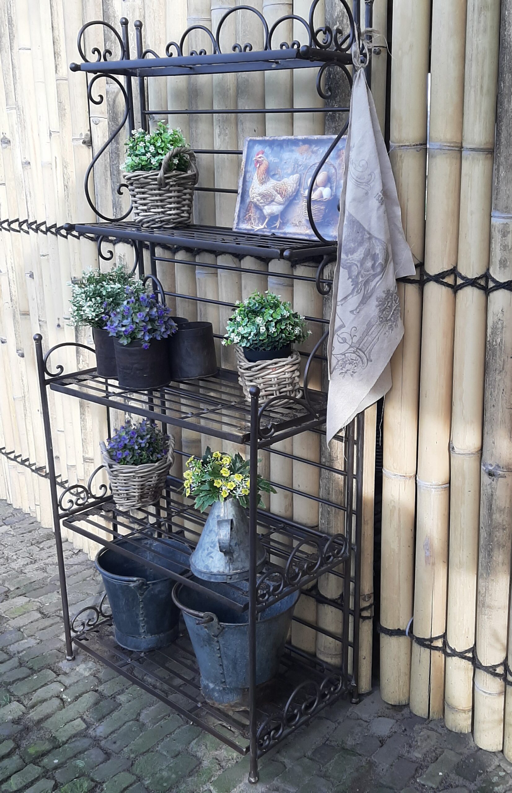 Creëer een speels en groen accent in jouw buitenruimte met deze praktische én decoratieve metalen etagère.