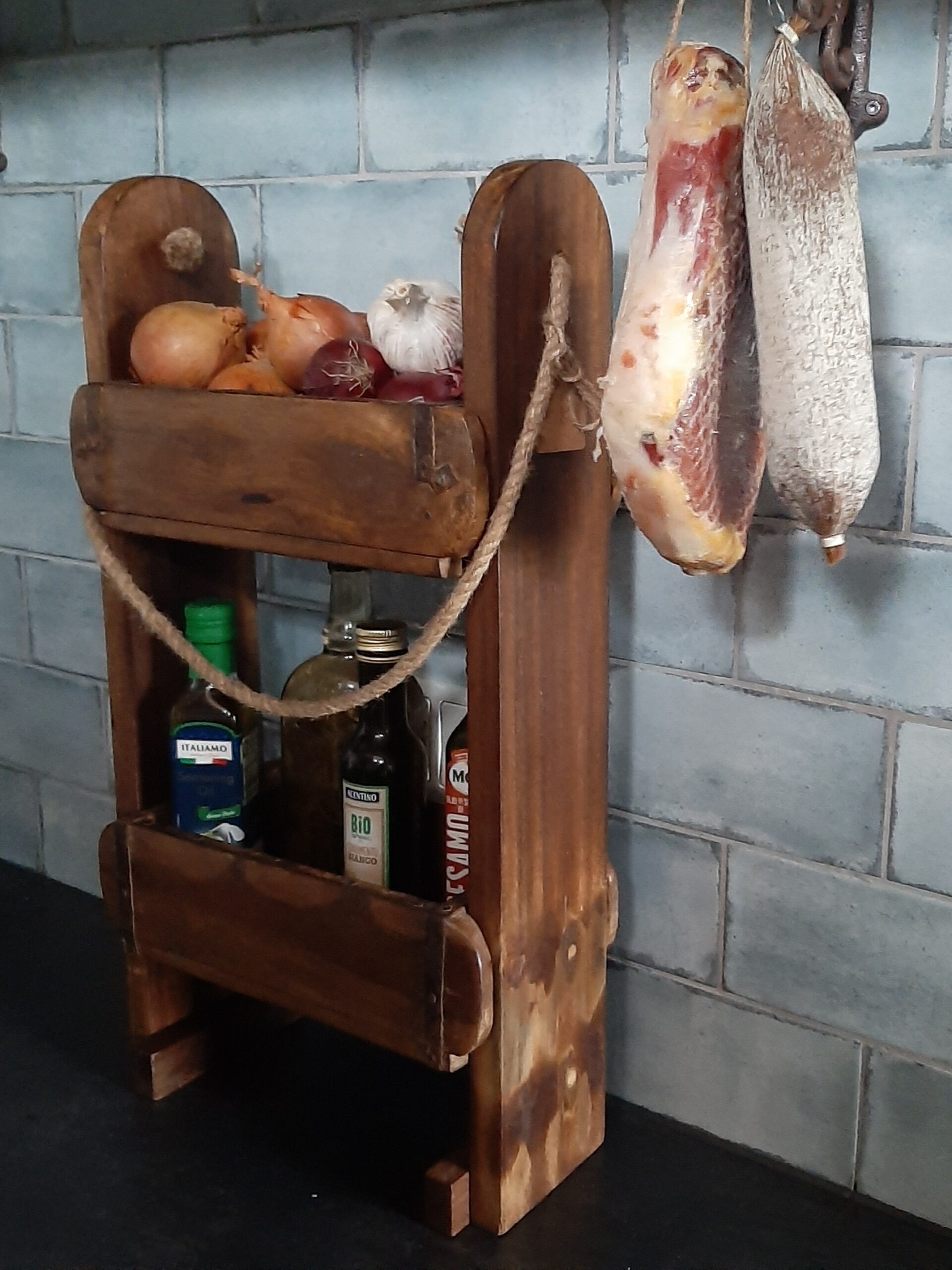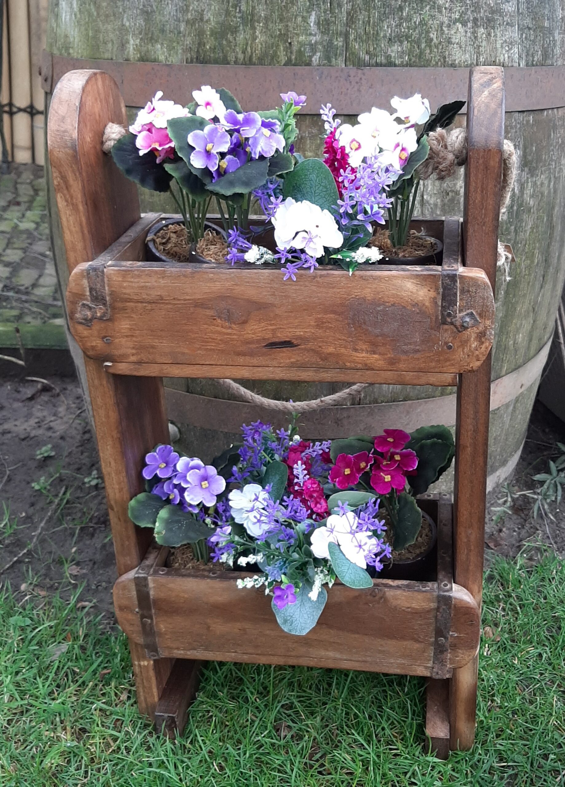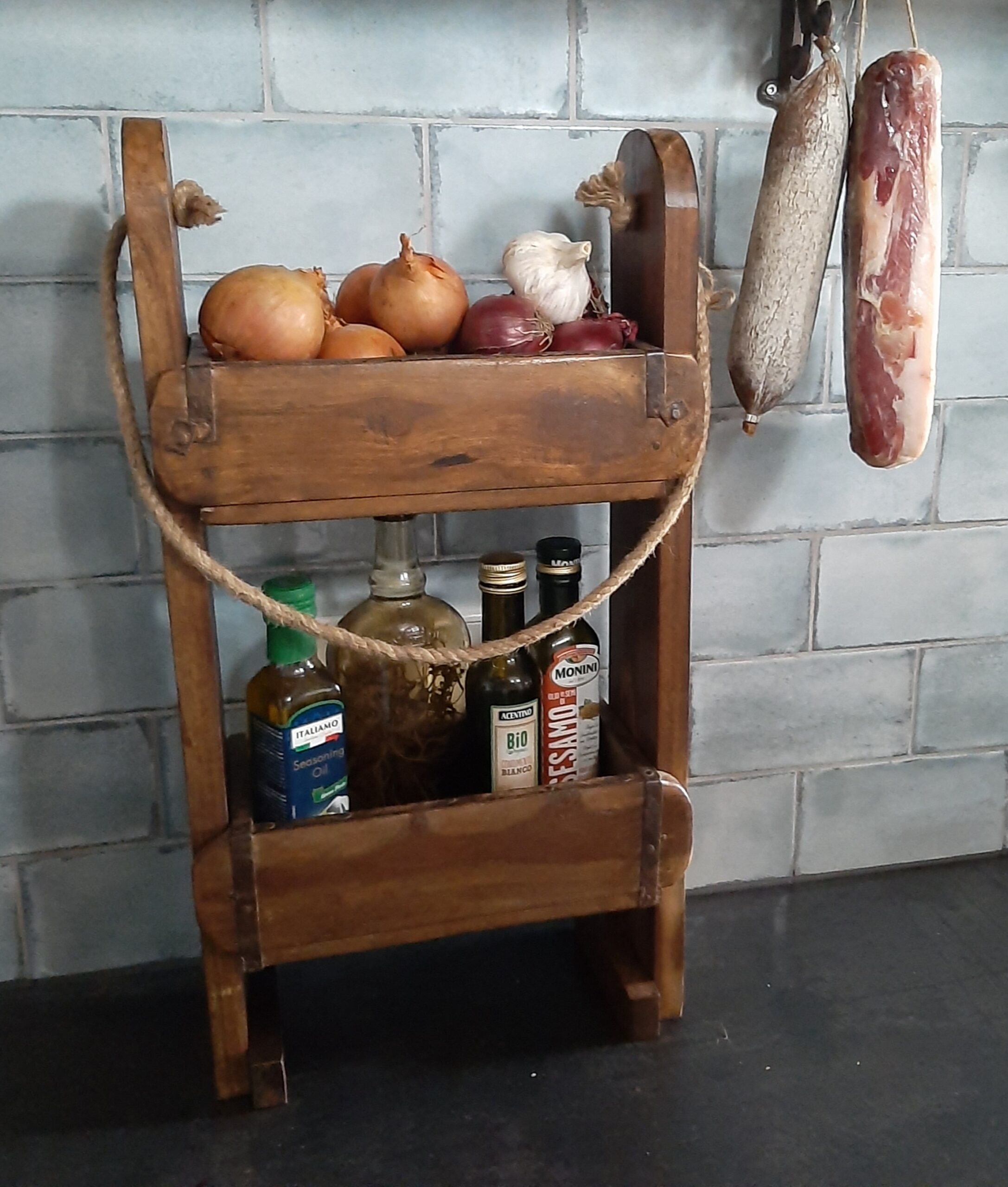 Deze etagère, gemaakt van een oude steenmal, is een robuust en brocante rekje dat perfect past in de keuken of badkamer. Het heeft een unieke, rustieke uitstraling door het gebruik van gerecycled materiaal het toont gebruikssporen die bijdragen aan het vintage karakter. Dit rekje is niet alleen functioneel, maar ook decoratief. Het is ideaal voor het opbergen van kleine items zoals toiletartikelen en parfumflessen op de badkamer Of op het aanrecht in de keuken voor bijvoorbeeld kruidenpotjes of bestek.