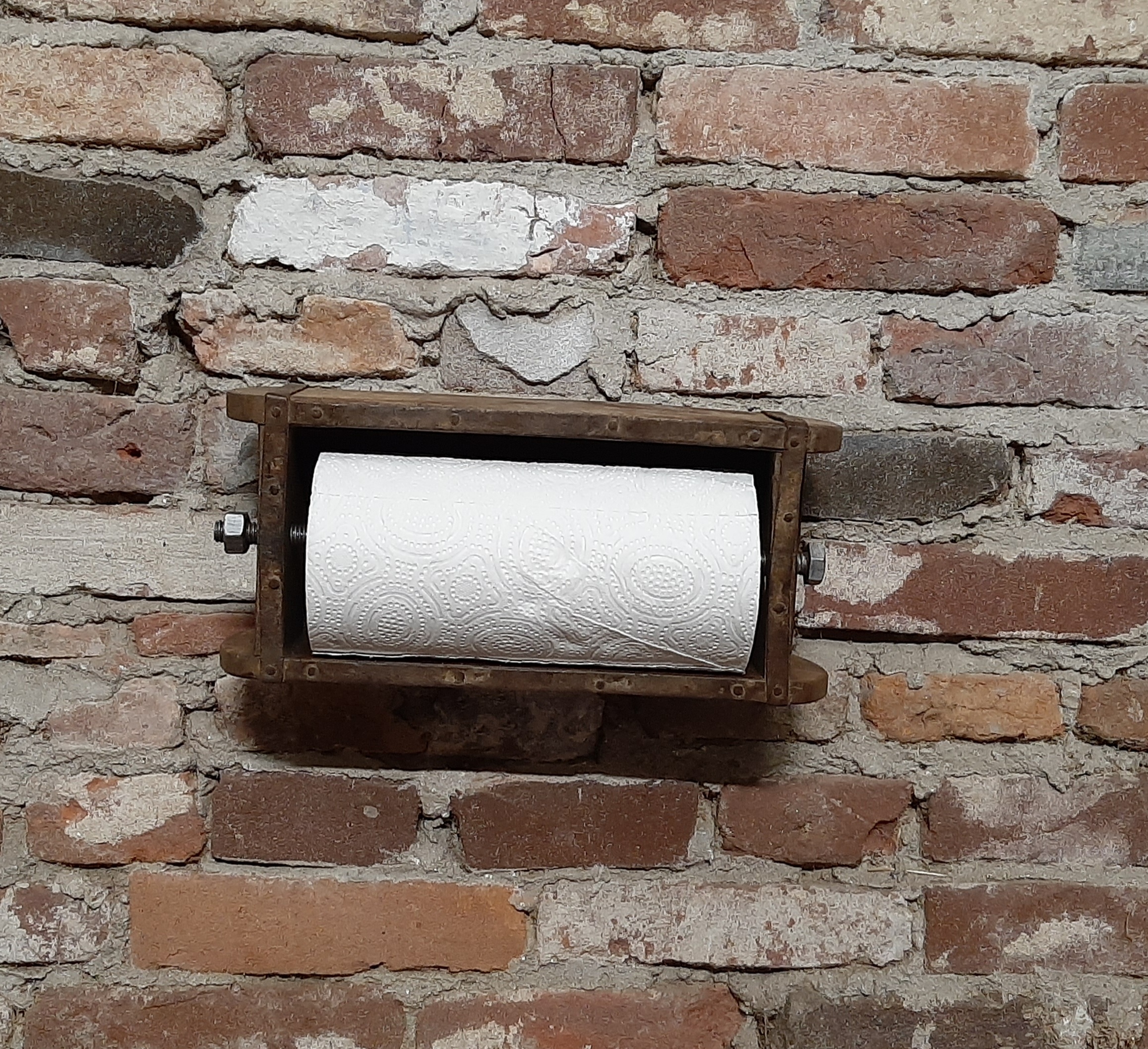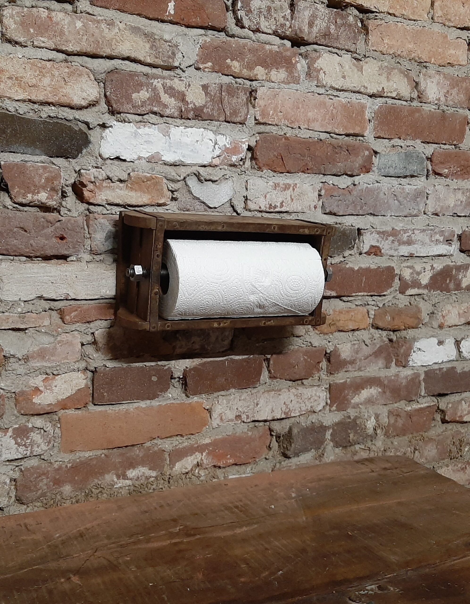 Deze keukenrolhouder heeft een robuuste uitstraling en past prima in landelijke interieur. De houders zijn gemaakt van hout die dienst hebben gedaan als mal om stenen in te gieten hierdoor hebben deze een mooie oude patine wat elk model uniek maakt.