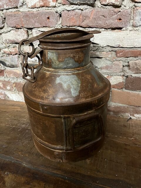 Deze prachtige oude melkkan is een uniek decoratiestuk met karakter. Door de jaren heen heeft elke kan zijn eigen gebruikssporen ontwikkeld, wat zorgt voor een authentieke en doorleefde uitstraling.