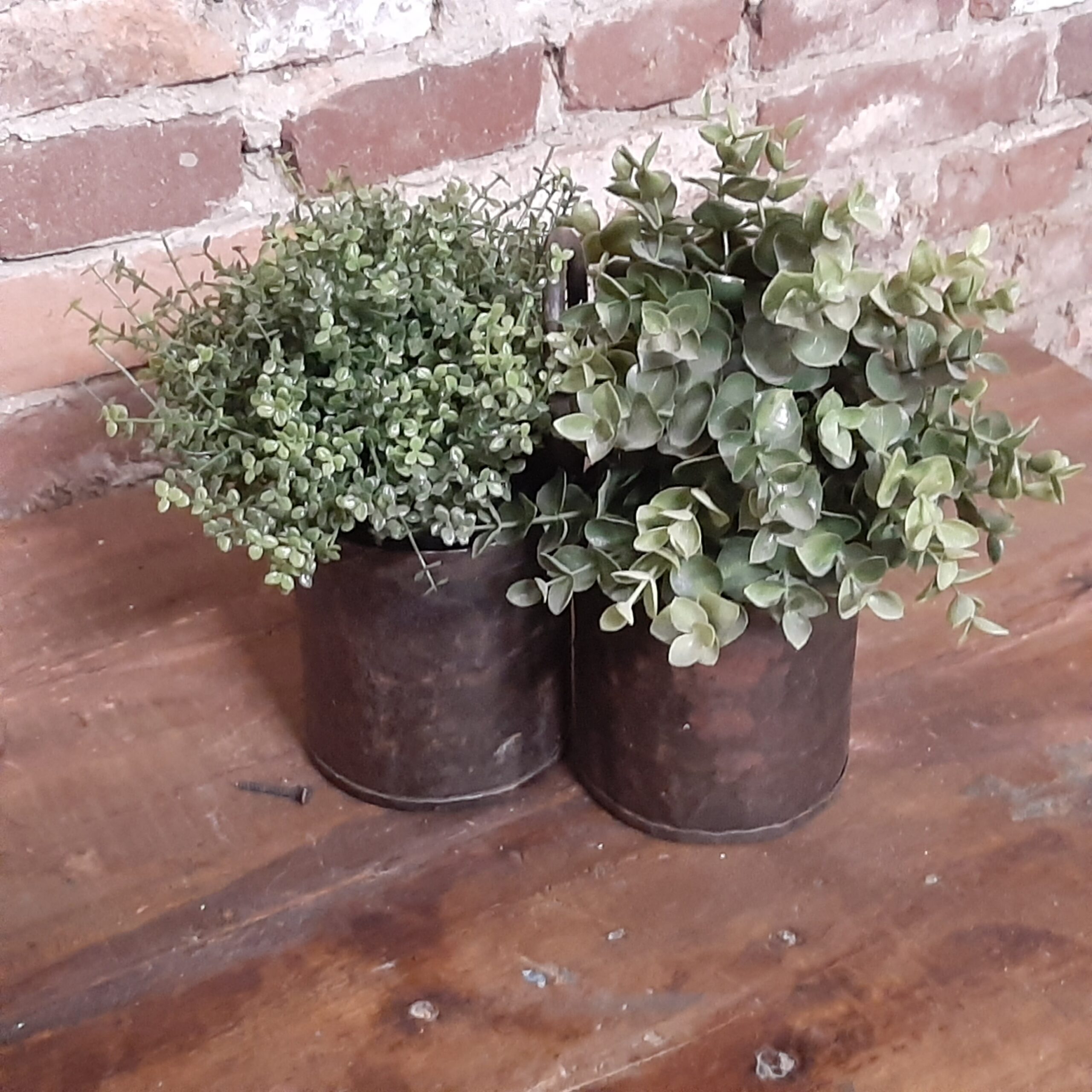 Geef je interieur een stoer en doorleefd accent met deze set van twee metalen potjes met oog. De potjes hebben een prachtige roestige, gebruikte uitstraling die perfect past in een industrieel, landelijk of vintage interieur.