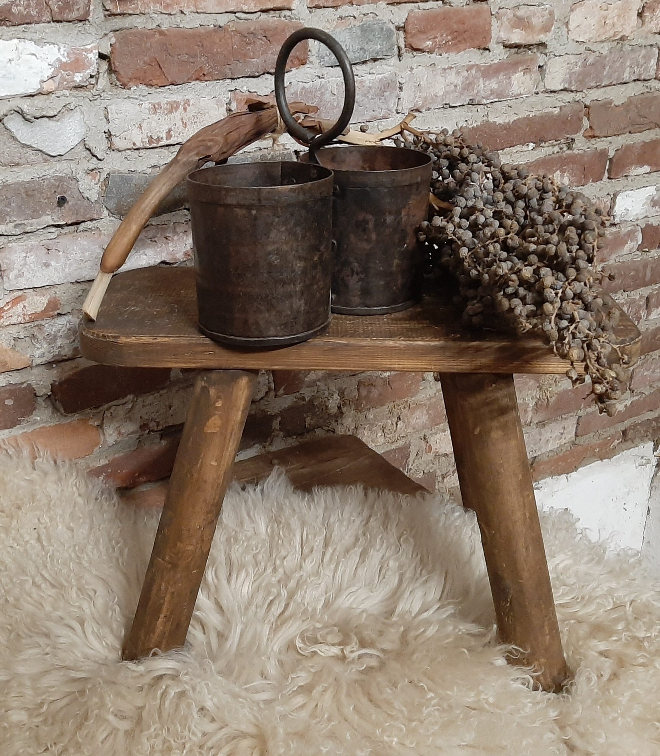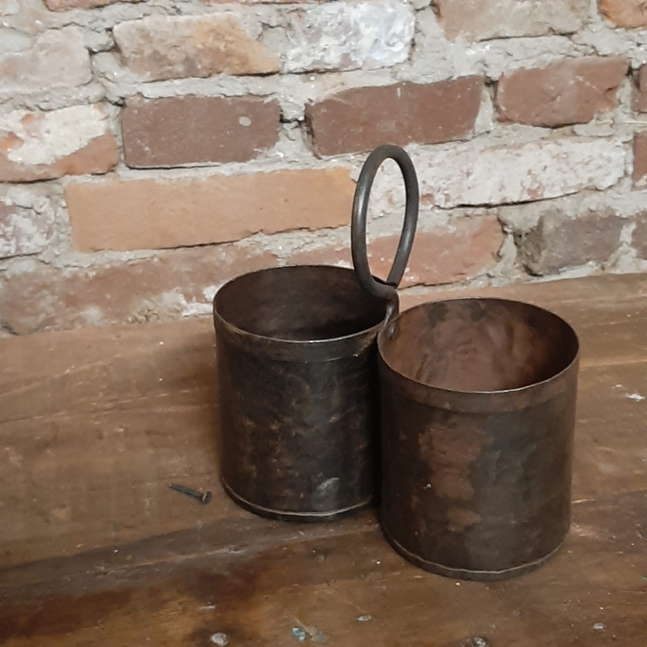 Stoere set metalen potjes met roestige, gebruikte uitstraling. Perfect als pennenbakje, voor keukengerei op het aanrecht of voor accessoires in de badkamer. Decoratief én praktisch, ideaal voor een industrieel of landelijk interieur.