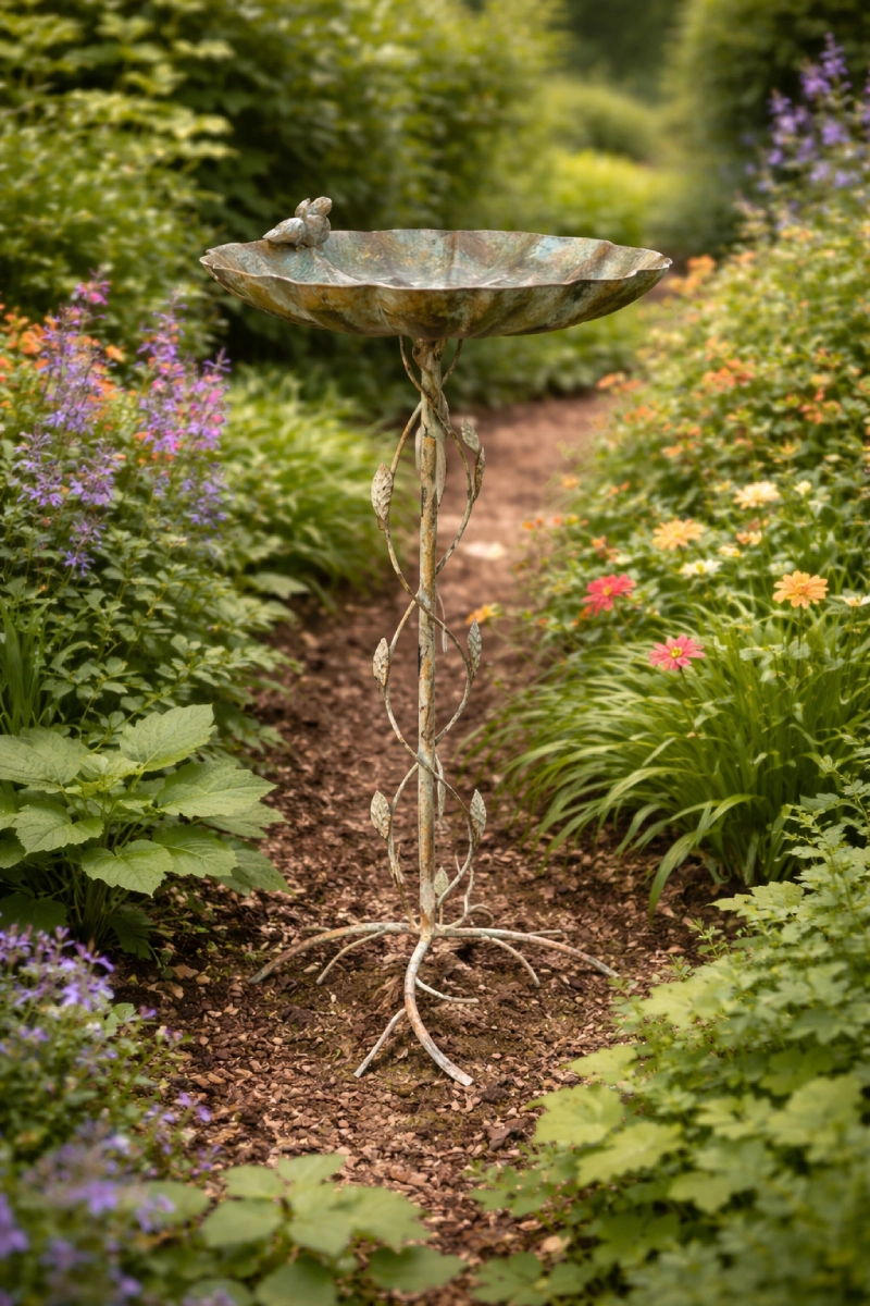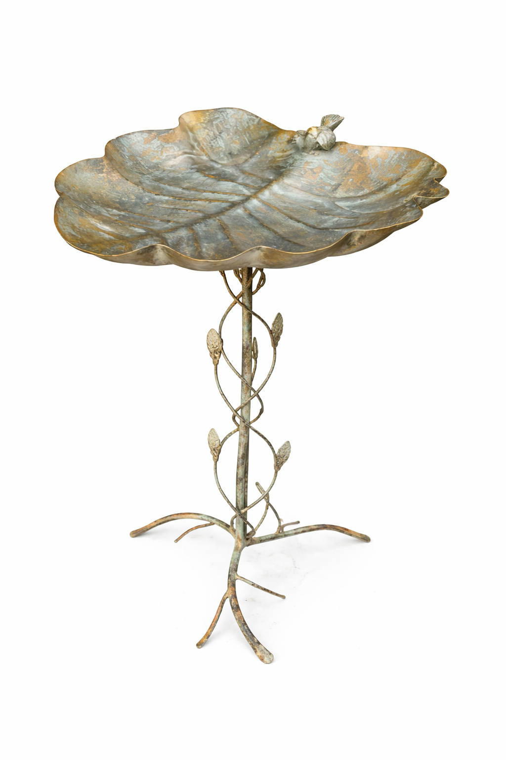 Geef vogels een fijne plek én je tuin extra charme met dit vogelbad op standaard. Met sierlijke blad-details, groene patina en bestand tegen alle weersomstandigheden.