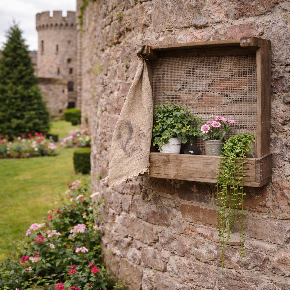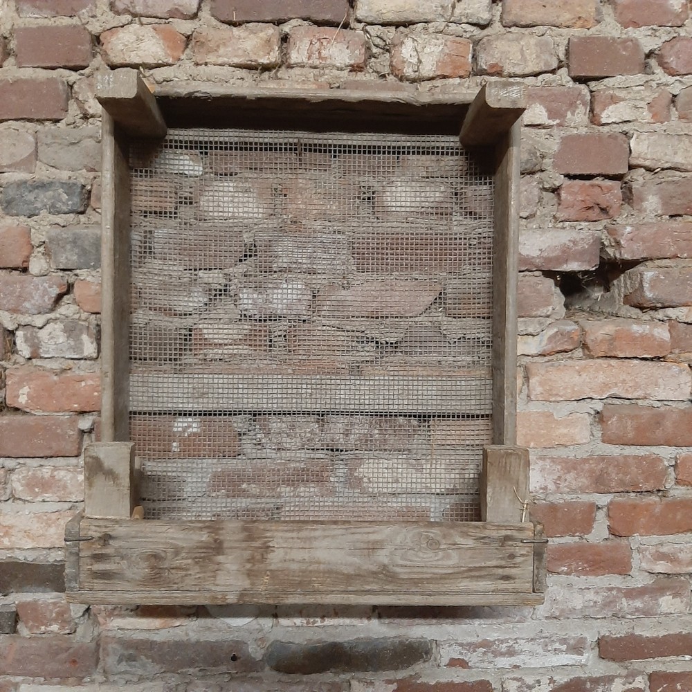 Dit stoere wandrek heeft dienst gedaan als kist om bloembollen of uien in te drogen en heeft daarom mooie gebruikssporen en een natuurlijke patina.Wij hebben deze aangepast om aan de muur of schutting te schroeven om bijvoorbeeld planten in te zetten.